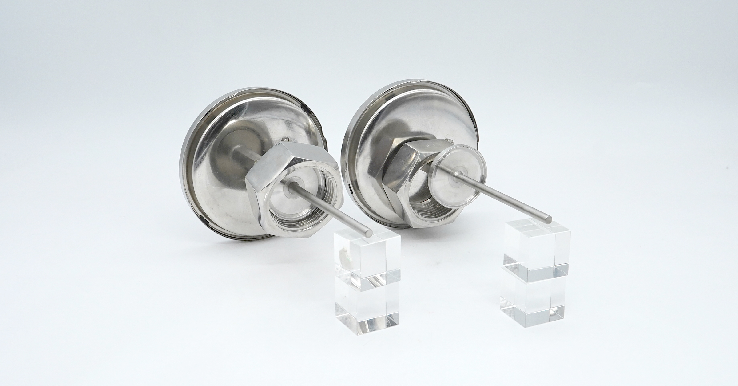 | Connection designs | Male thread, plain stem, compression fitting (sliding on stem), union nut and loose threaded connection, male nut, union nut, sanitary end cap, metallic sheet with dual hole, flange on stem |