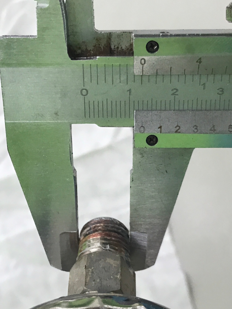 Use a vernier caliper to measure thread size.
